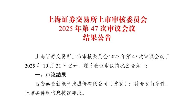 2025年10月31日,西安泰金新能科技股份有限公司(以下简称“泰金新能”)科创板IPO项目获得上市委审议通过。